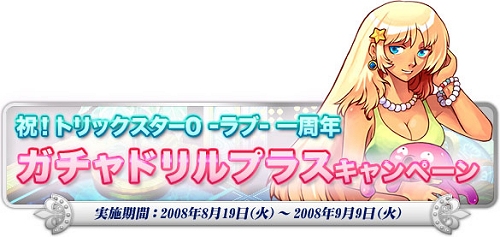 「【祝!トリックスター0 -ラブ- 一周年】ガチャドリルプラスキャンペーン」