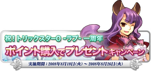 さらに、【トリックスター0 -ラブ- 一周年】を記念した3つのキャンペーンについてお知らせいたします。
